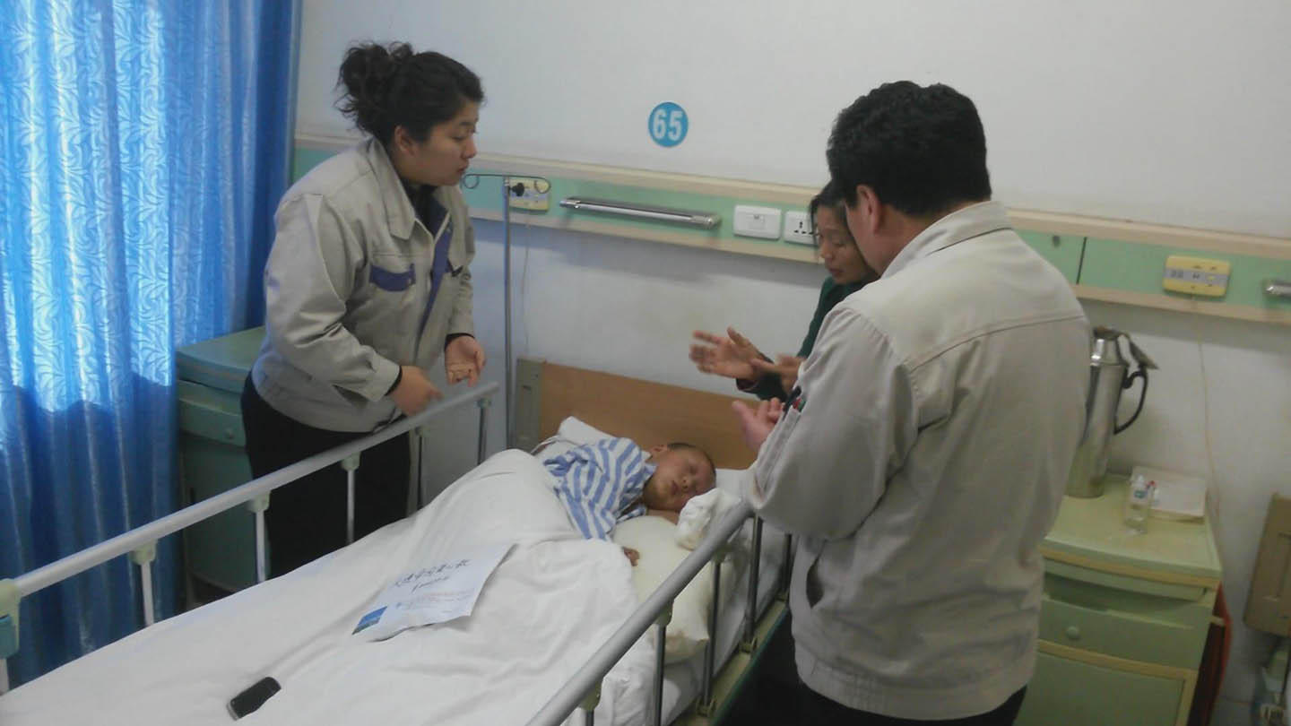 2月18日,由公司工会张增刚主席和总务部领导带队,一行来到大连医科大学附属第一医院看望了小英杰同学,并把满载公司450名员工爱心的募捐款亲自送到了患者家属手中。